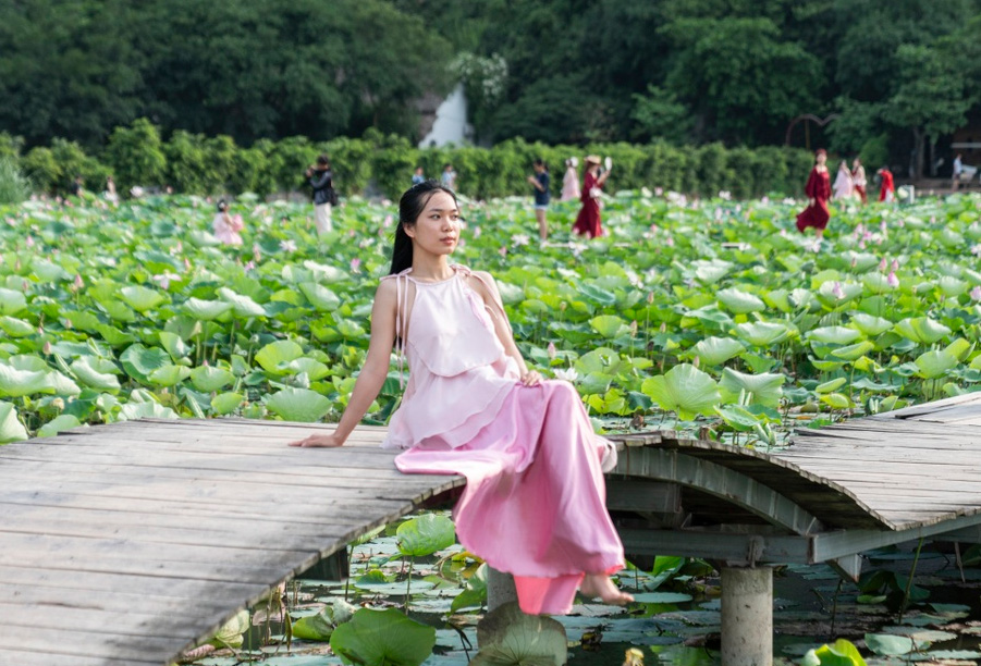 Đầm sen Hang Múa rộng hơn một ha được xem là “thánh địa sống ảo” của du khách trong và ngoài nước, năm 2025. Ảnh: Znews